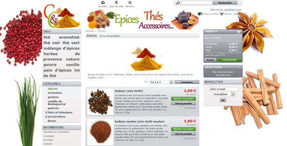 Conseil et réalisation de la charte graphique, logo, pour un magasin à Morestel et une boutique en ligne de vente d'épices et thé. Réalisation du site internet sous prestashop et d'un tract.